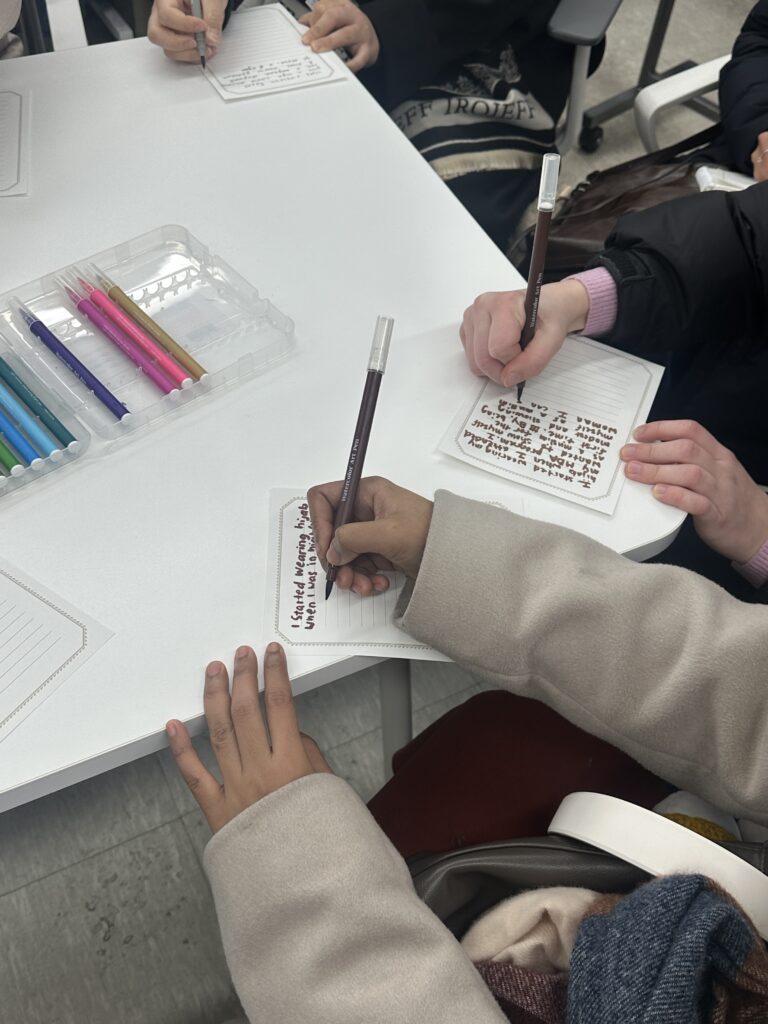 Participants were invited to write down what the hijab means to them personally as a symbol of faith, identity, empowerment, or personal growth. These reflections were placed into beautifully prepared envelopes, creating a meaningful and memorable activity that honored each woman’s unique journey.